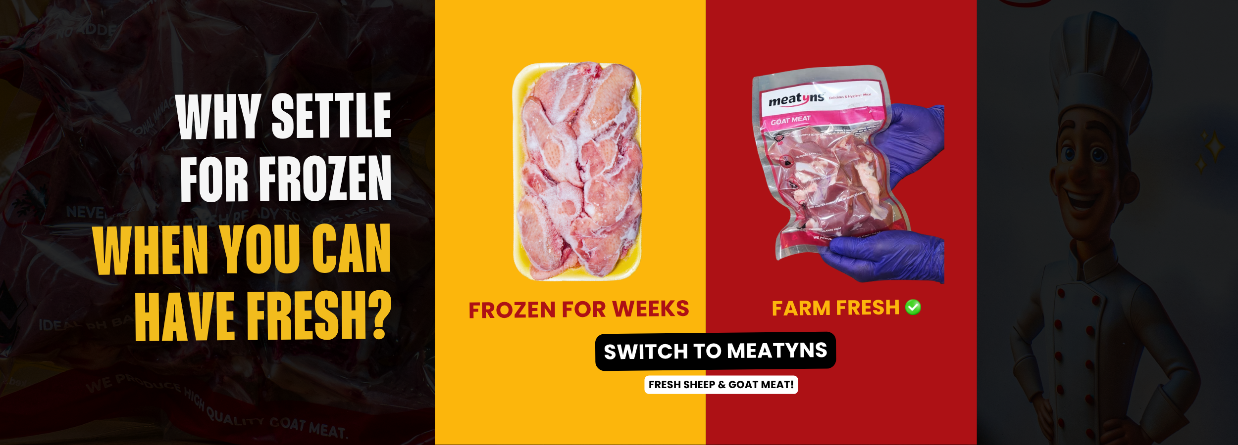At Meatyns, we believe freshness isn’t just a feature—it’s a promise. Every cut of goat and sheep meat is ethically sourced, handled with utmost hygiene, and delivered straight from our trusted farms to your kitchen. Whether you're cooking a Sunday special or stocking up for the week, trust us to deliver clean, juicy, and authentic meat every time.