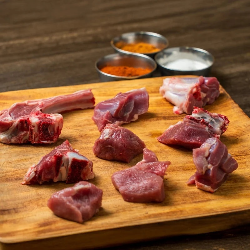 Perfectly portioned fresh goat curry cut for big family meals — tender, juicy, and full of flavour.